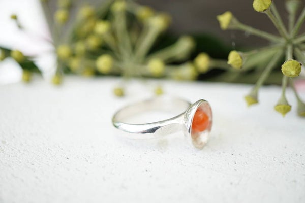 Zilver 925 met bloedkoraal maat 56